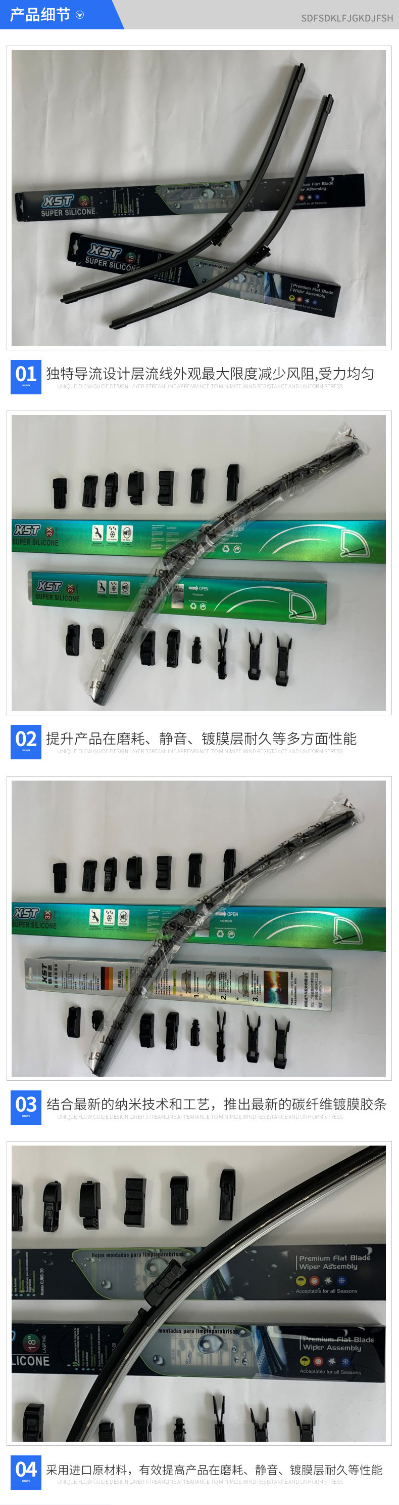 新視途汽車配件有限公司針對汽車售后市場,潛心專業專注的研究硅膠鍍膜技術,專注改良、開發多款配方和工藝,多年來根據不同雨刷款型的需要,推出多系列通用和專用鍍膜膠條,目前結合最新的納米技術和工藝,再次推出最新的碳纖維鍍膜膠條,且采用德國進口原材料,有效提高產品在磨耗、靜音、鍍膜層耐久等性能,是普通雨刷數倍。