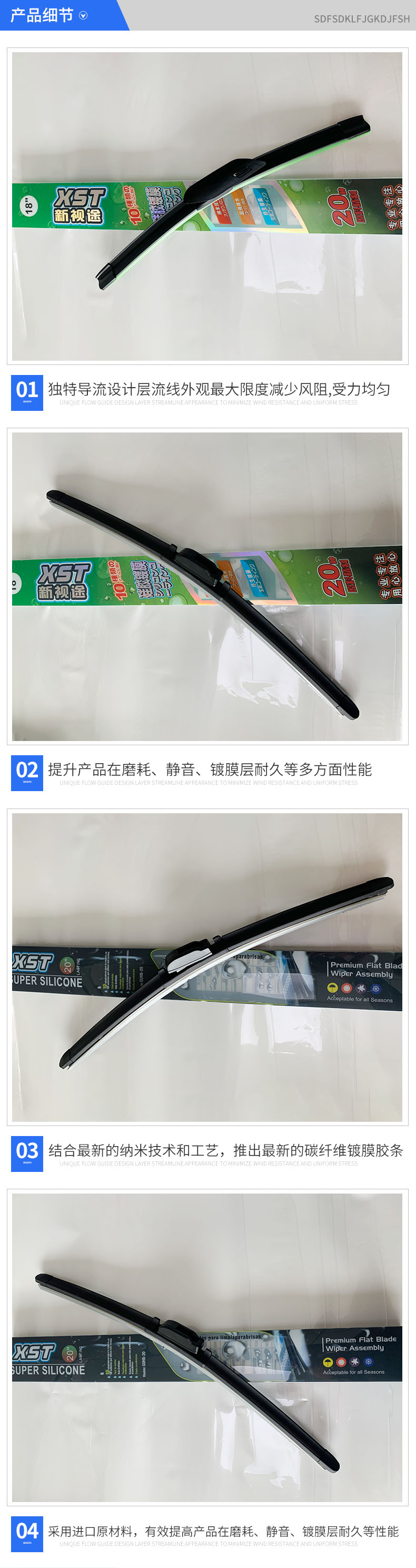 新視途汽車配件有限公司針對汽車售后市場,潛心專業專注的研究硅膠鍍膜技術,專注改良、開發多款配方和工藝,多年來根據不同雨刷款型的需要,推出多系列通用和專用鍍膜膠條,目前結合最新的納米技術和工藝,再次推出最新的碳纖維鍍膜膠條,且采用德國進口原材料,有效提高產品在磨耗、靜音、鍍膜層耐久等性能,是普通雨刷數倍。